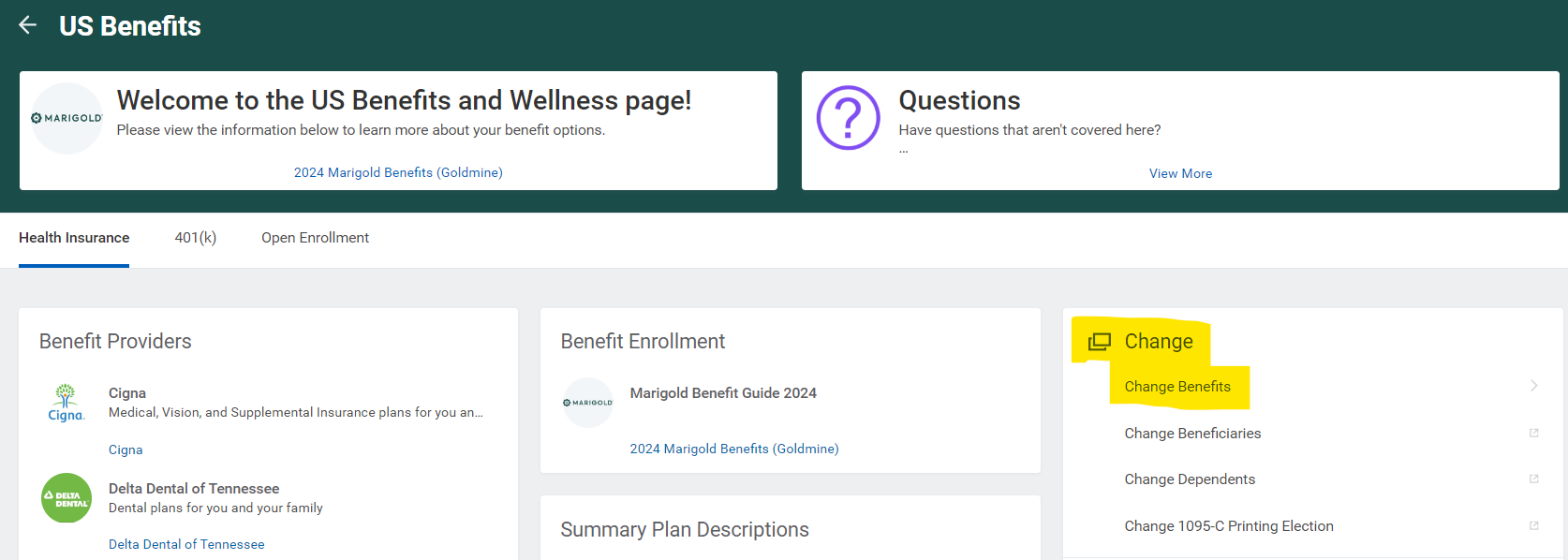 Marigold also allows you to make changes throughout the year to your Beneficiaries, HSA contributions, and FSA commuter contributions without a Qualifying Life Event.
