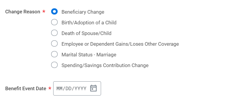 Instructions on how to change benefits in Workday: